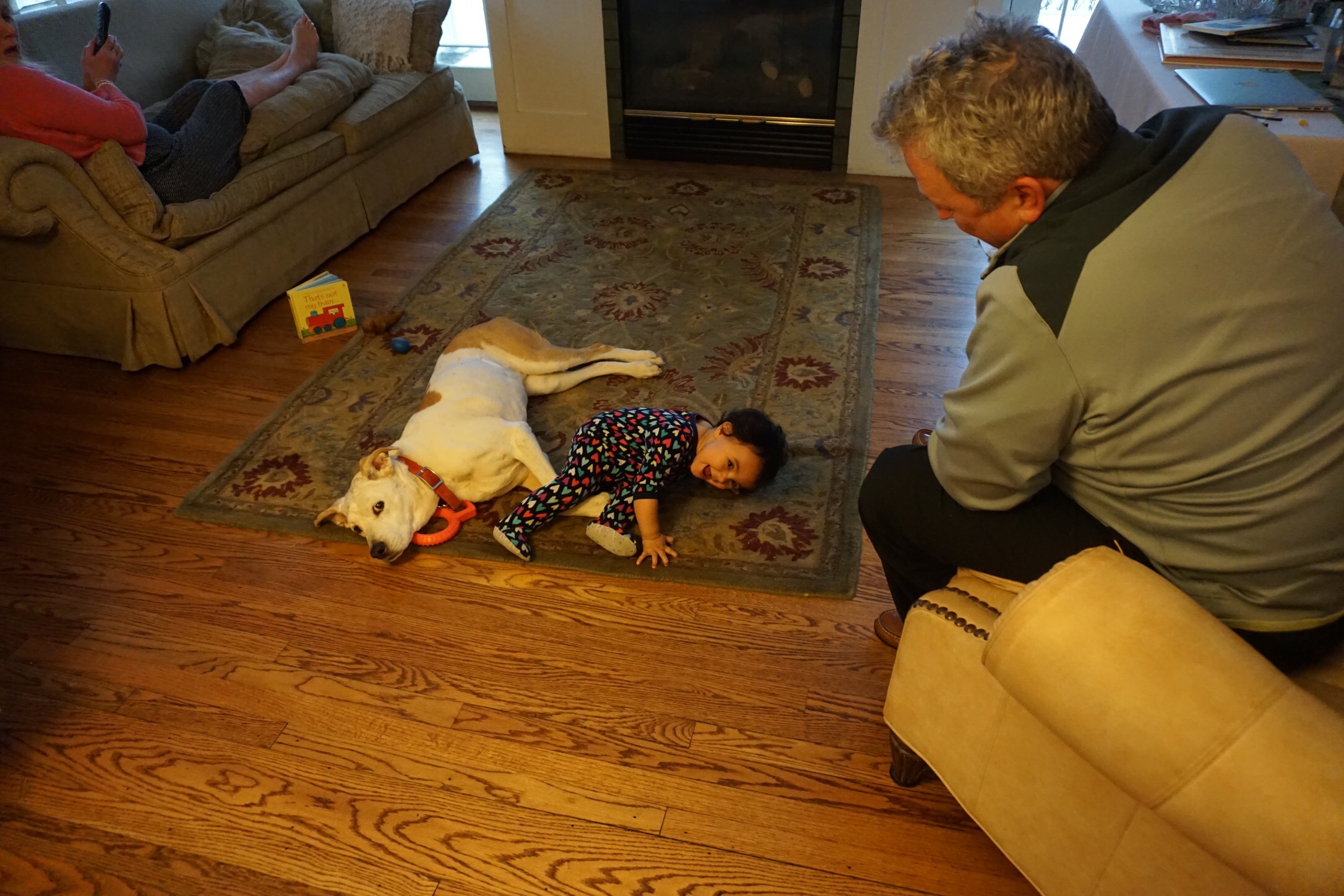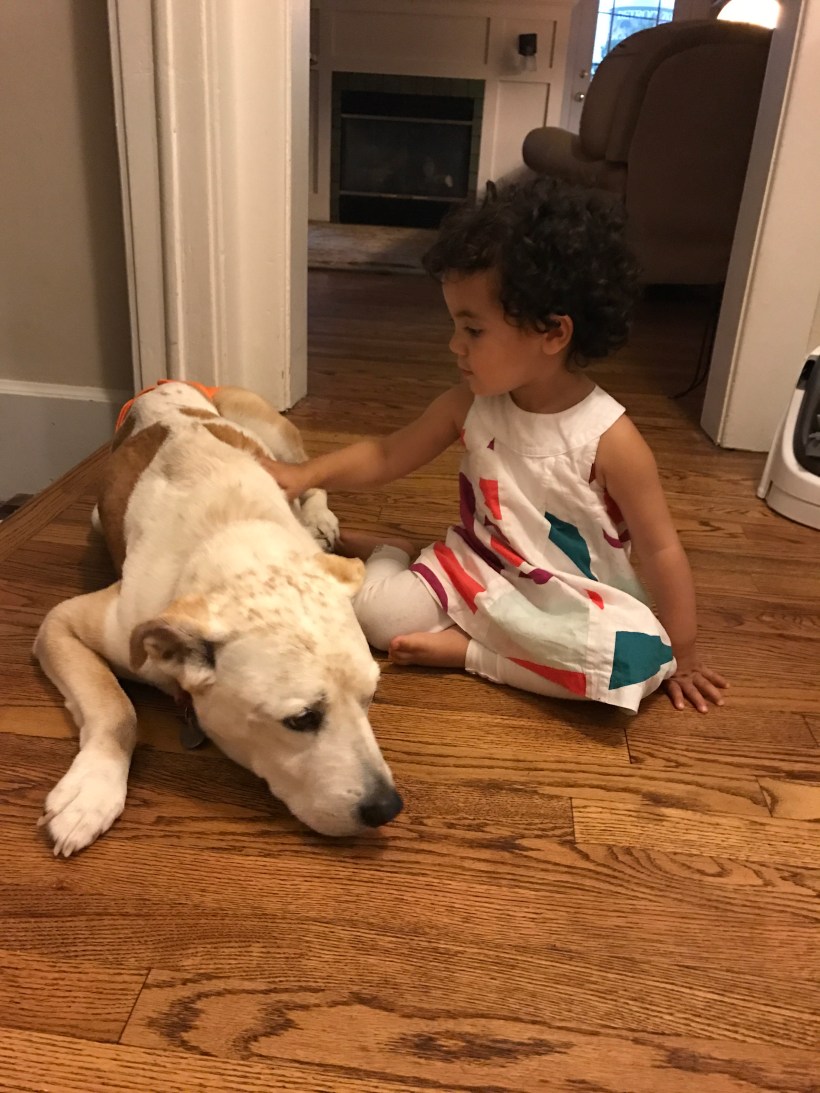I appreciated Hermione even more when two years ago we introduced her to Mimi, a brand new infant at the time. She knew Mimi was mine, and as Mimi grew, Hermione tolerated all of the pinches and pulls and tumbles. She was the source of some of the greatest pleasure I’ve seen in my kid, introducing Mimi to the magical sensation of touching a furry, warm creature and having that animal respond. Hermione is why one of Mimi’s first words was “dah” and why she now squeals at the prospect of seeing Hermione. For this, I am so grateful.