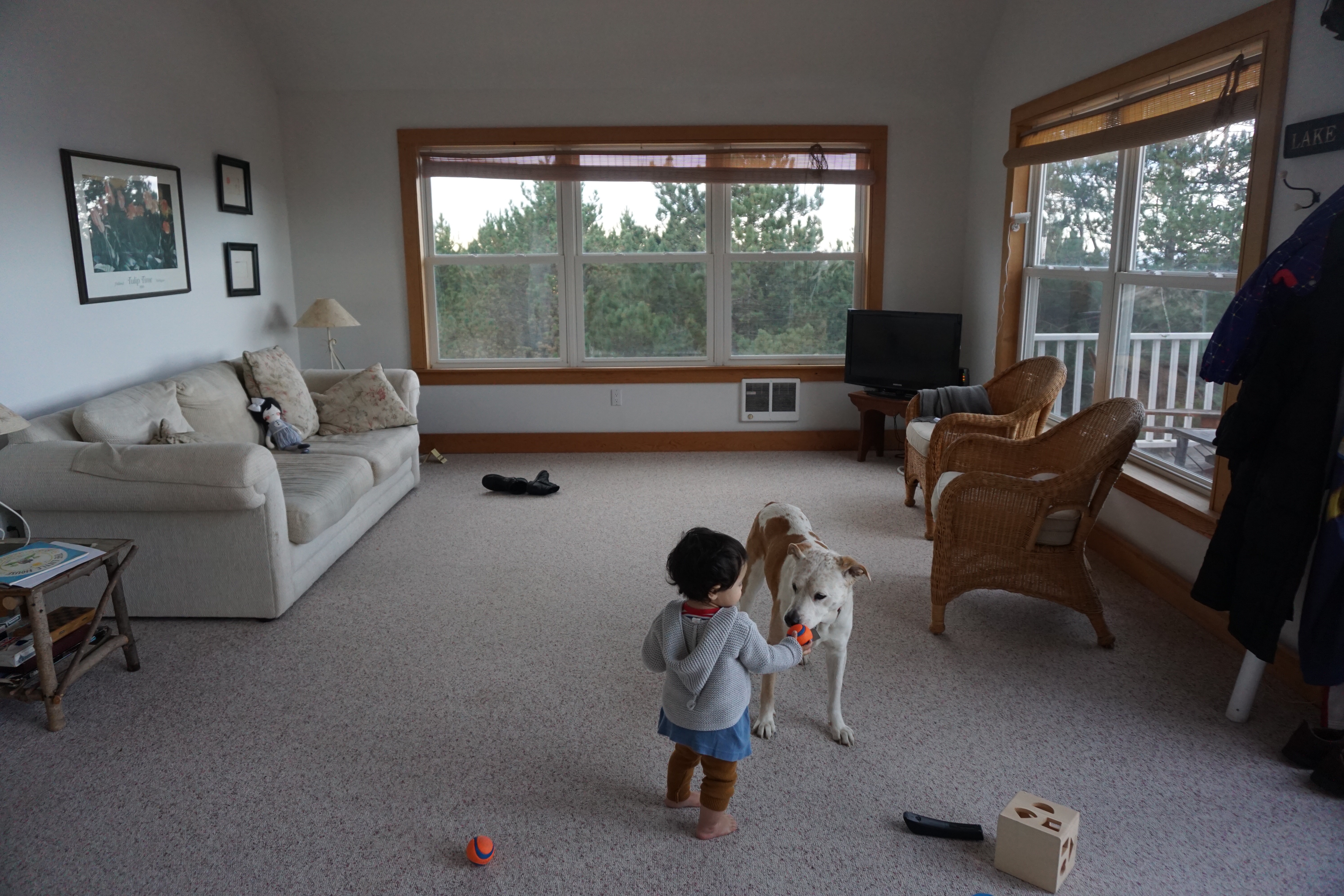 Now, though, Hermione’s body has succumbed to cancer and she is thin and weak and has lost her enthusiasm for doing much of anything. She hung on just long enough for us to move to Michigan and for me to take her on walks and spend a few days, one with my sister, working from my parents’ patio while Hermione slept at my feet. I thanked her for being so good to us these last 12 years and she let me hug her and then she made eye contact with me. I’m sure she understood my meaning.